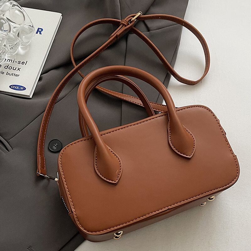 シンプルでありながら存在感のあるこのエコレザー・ボストンバッグは、トレンドの韓国系ファッションにもぴったりのボーリングトートバッグです。持ちやすいサイズ感とハンドルの長さが魅力で、どんなファッションにも自然に馴染みます。